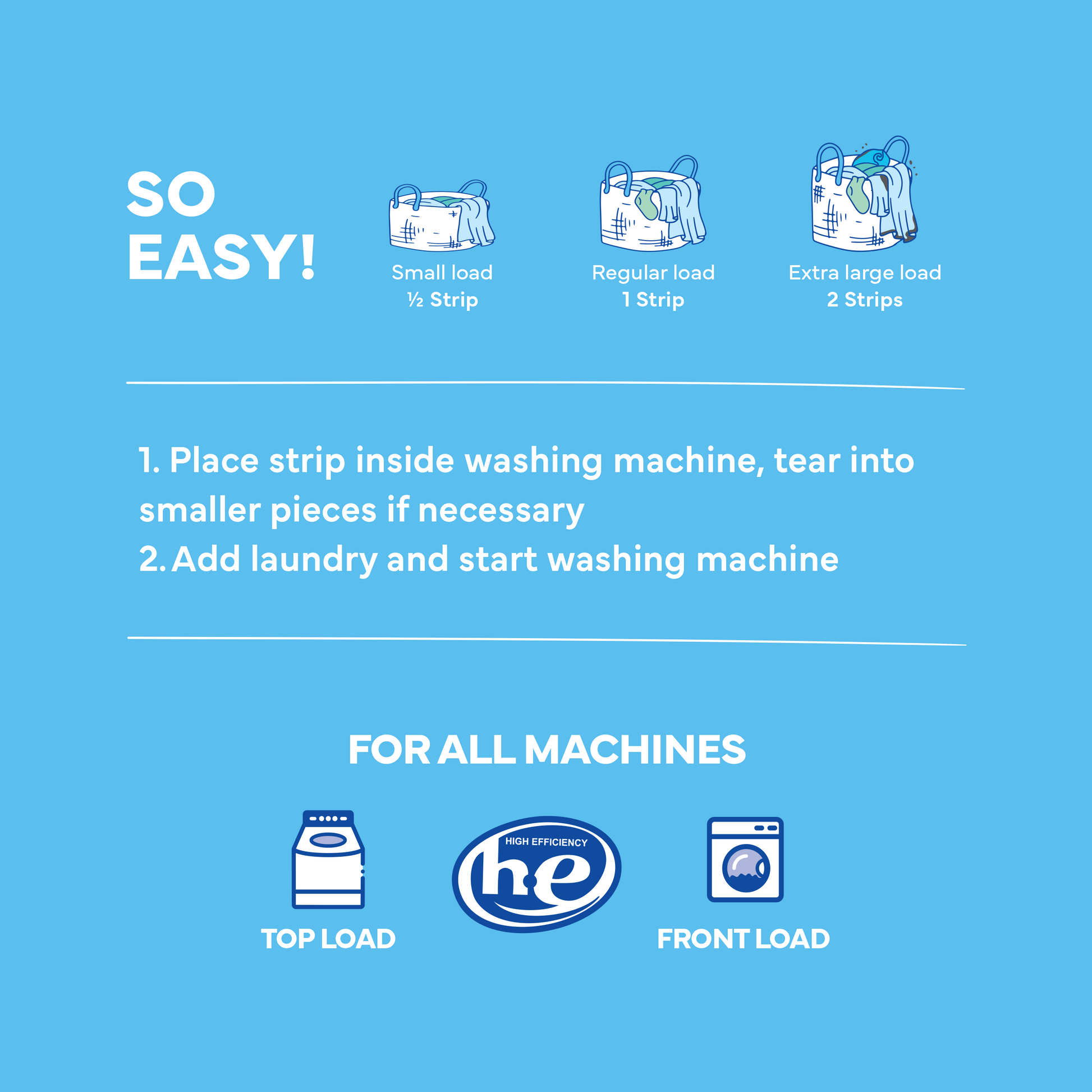 Pas de dosage, pas de dégâts — il suffit de jeter une feuille dans la machine avec votre lessive.